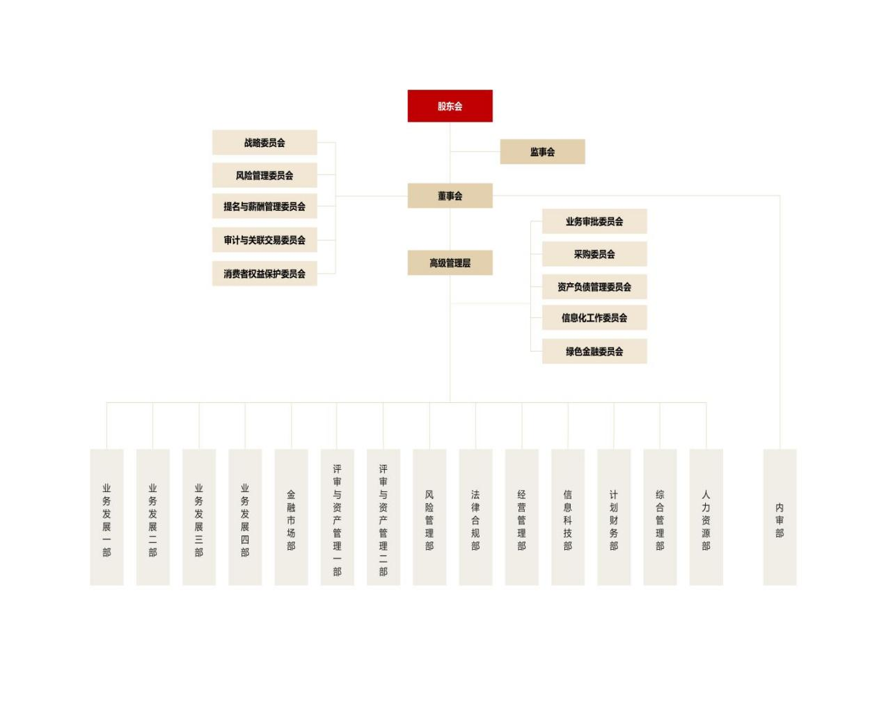 截至2024年末,公司内部共设立15个部门,未设置分支机构。组织架构如下图: