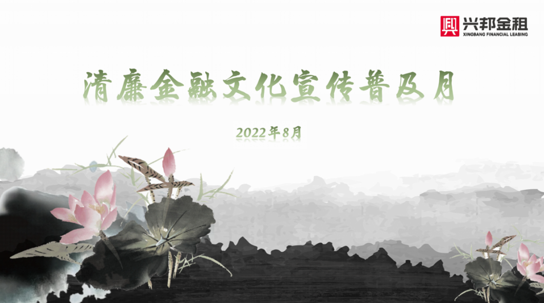 为深入贯彻落实银保监会《关于深入推进银保监会系统清廉金融文化建设的指导意见(试行)》与《深圳银行业保险业深化清廉金融文化建设实施方案》等文件要求,进一步营造风清气正的企业文化,2022年8月,兴邦金租开展了深化清廉金融文化建设系列活动。
